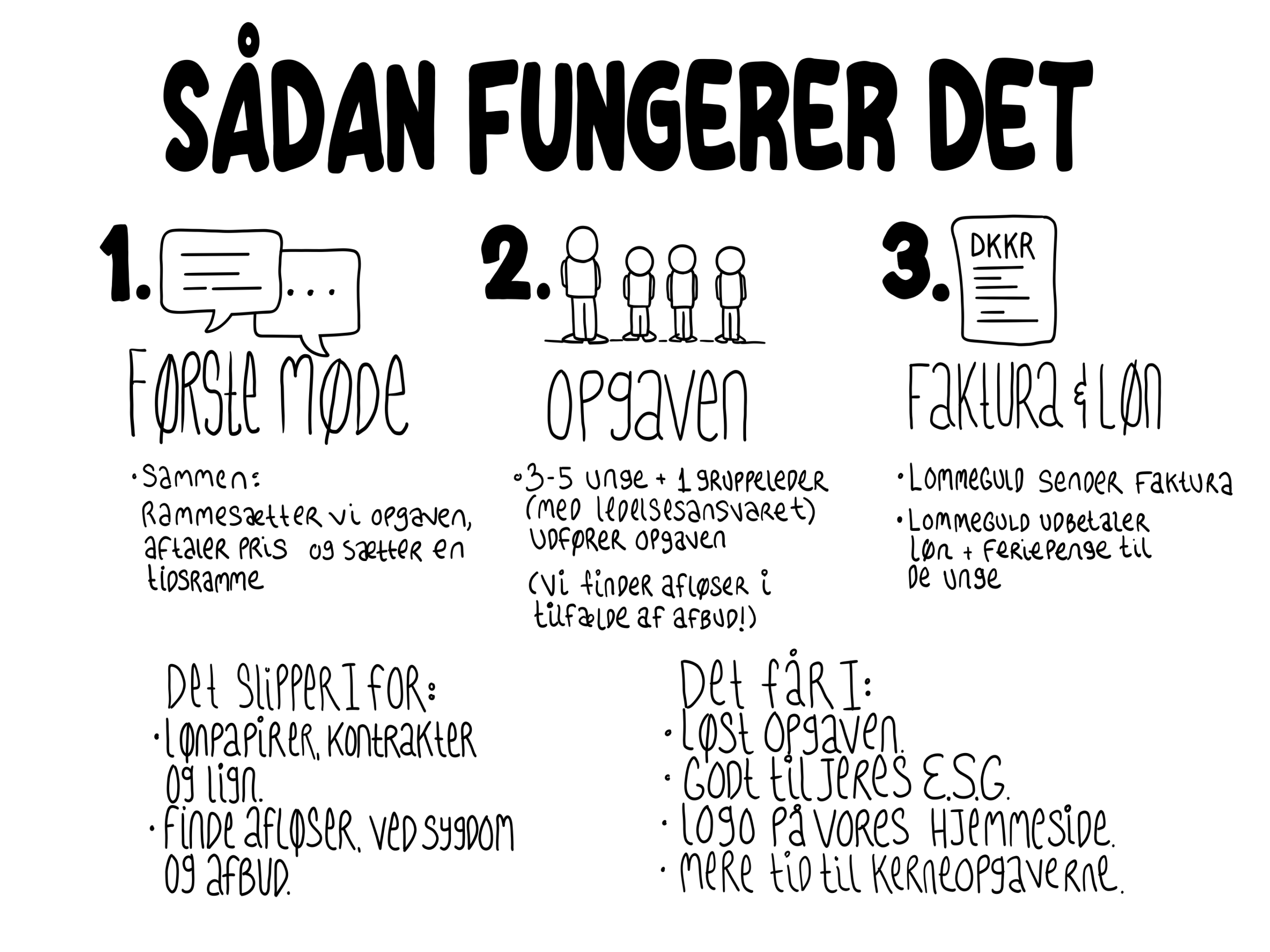 Vi ansætter, lønner, forsikrer og har de unges ryg – så I kan gøre det I er bedst til.
